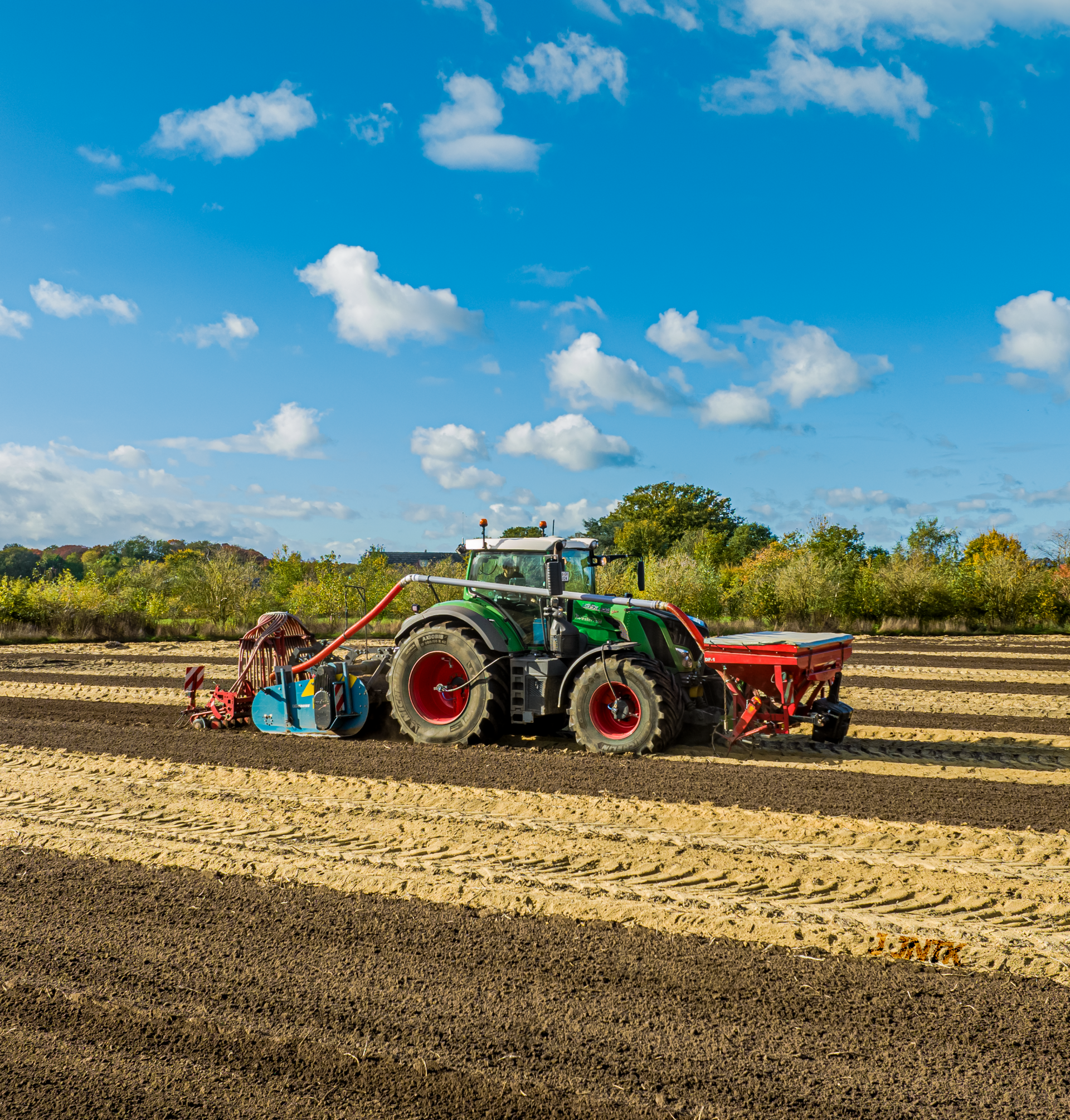 Deze werkzaamheden voeren wij uit met een 4-wielige Terra Gator. De combinatie van luchtdrukwissel met vier grote wielen en “hondengang” zorgt voor minimale insporing. Met een 18 m3 tank en veel pompvermogen kan een grote capaciteit worden gereden. Daarnaast is de machine uitgevoerd met een GPS-systeem voor een hoge nauwkeurigheid.