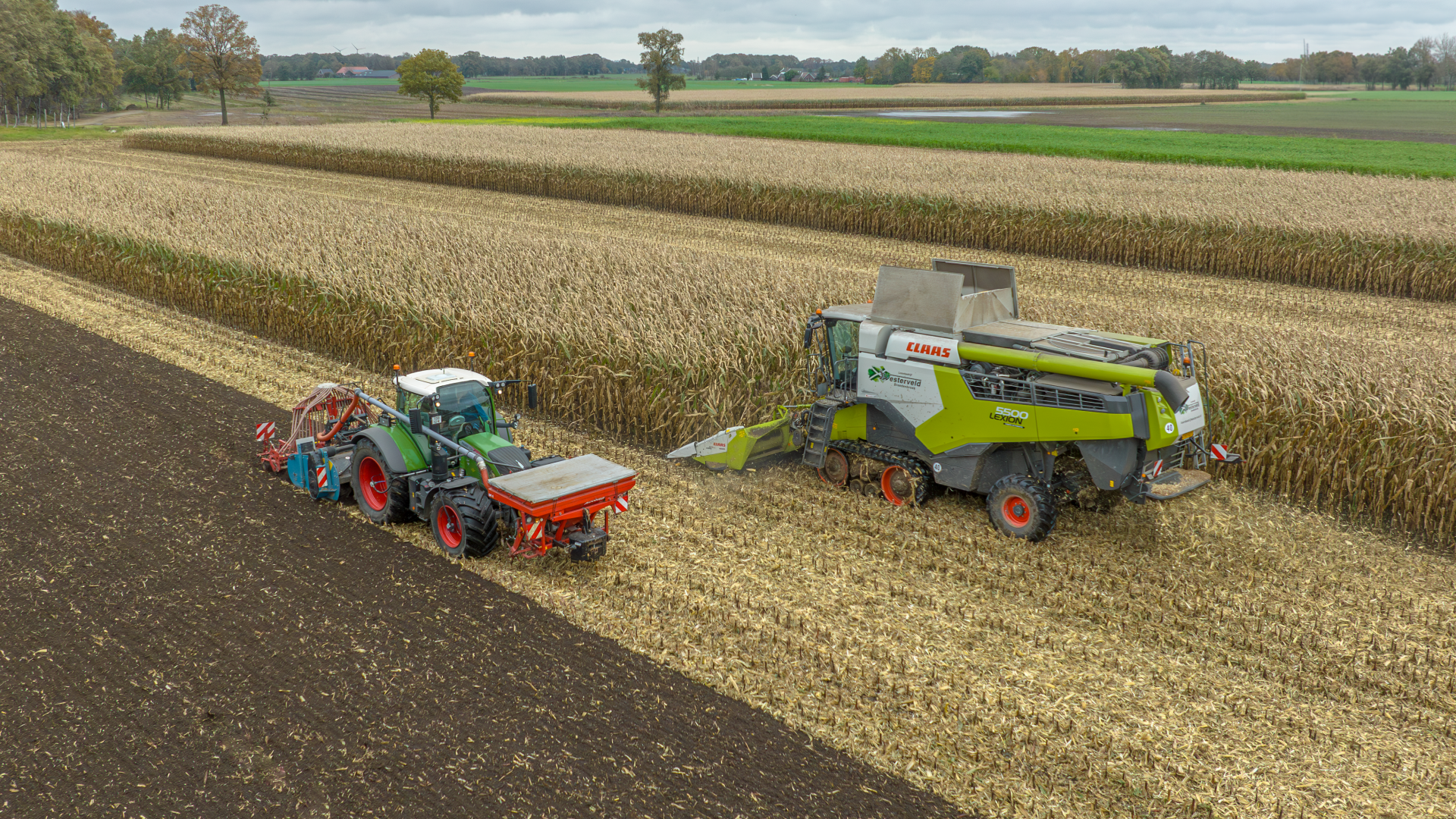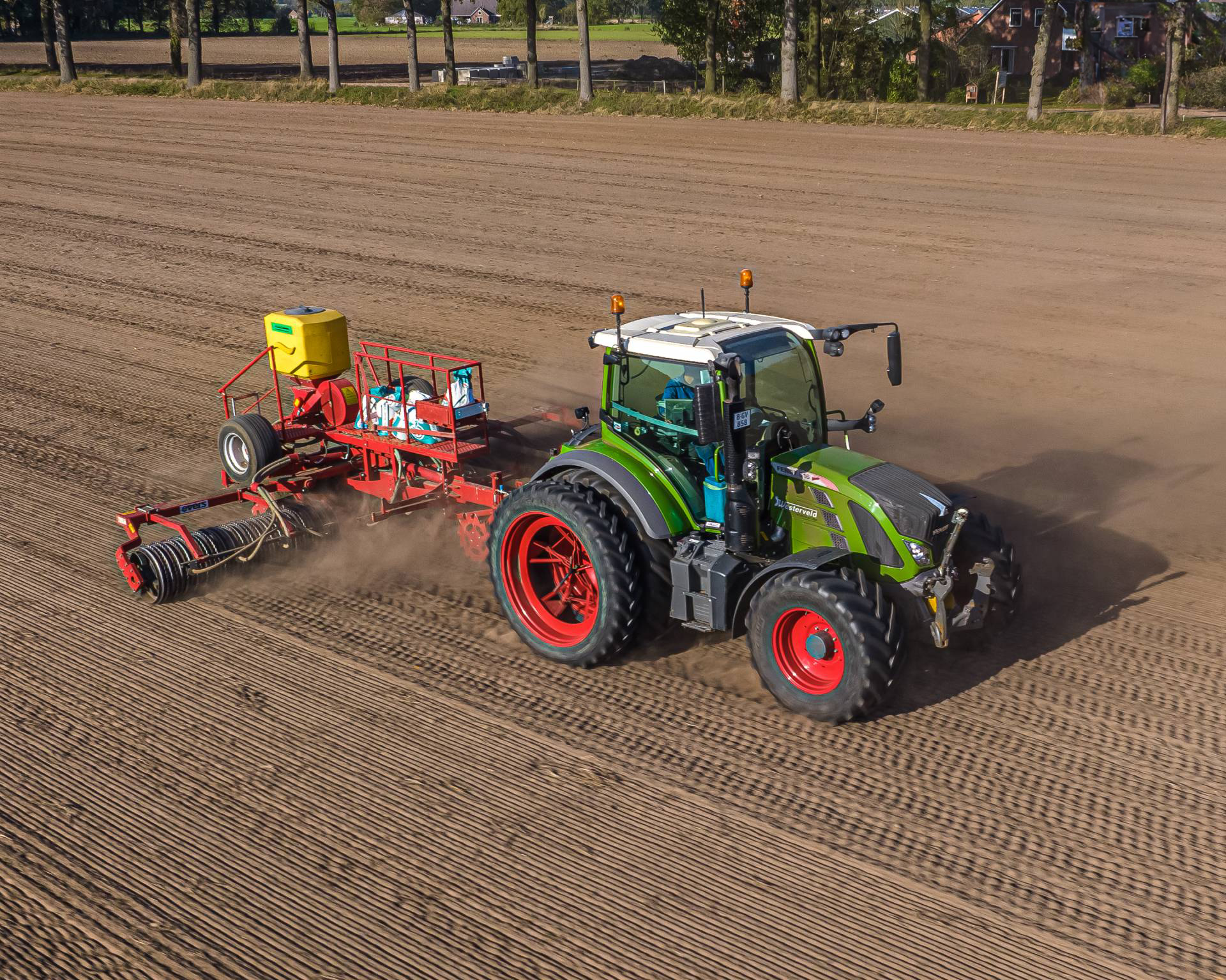 - Klaverzaaien. Het zaaien van klaver doen wij met een centrifugaal strooier in combinatie met een 6 meter cambridgerol. Een bewuste keuze omdat we de ervaring hebben dat het zich ontmengd tijdens het zaaien. Tevens wordt op dat moment het perceel nogmaals egaal aangedrukt.