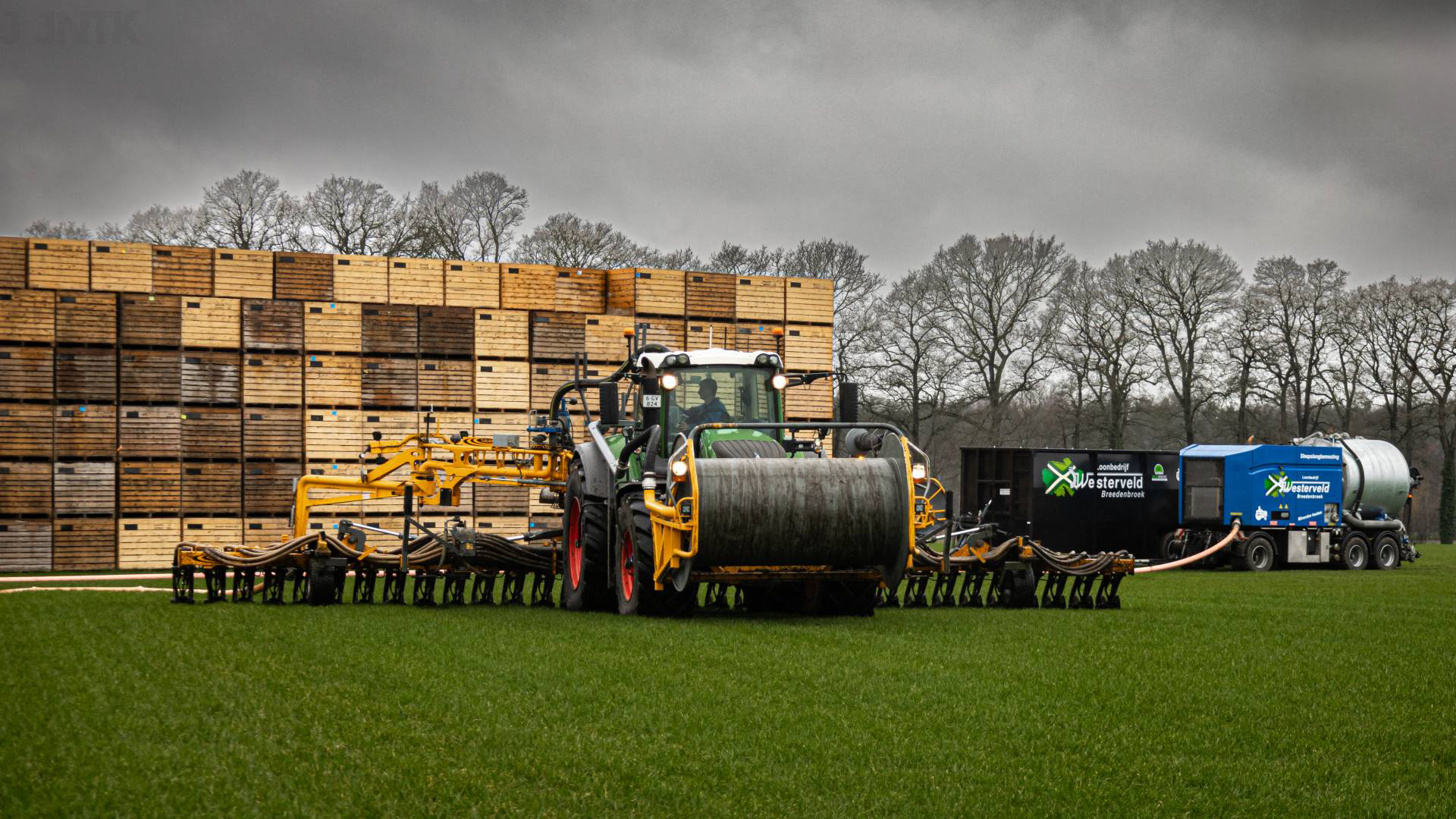 - Voor het zodenbemesten maken wij gebruik van een Vredo met 8.70 meter werkbreedte. Twee snijdende schijven zorgen ervoor dat de mest in alle omstandigheden goed in de grond komt.