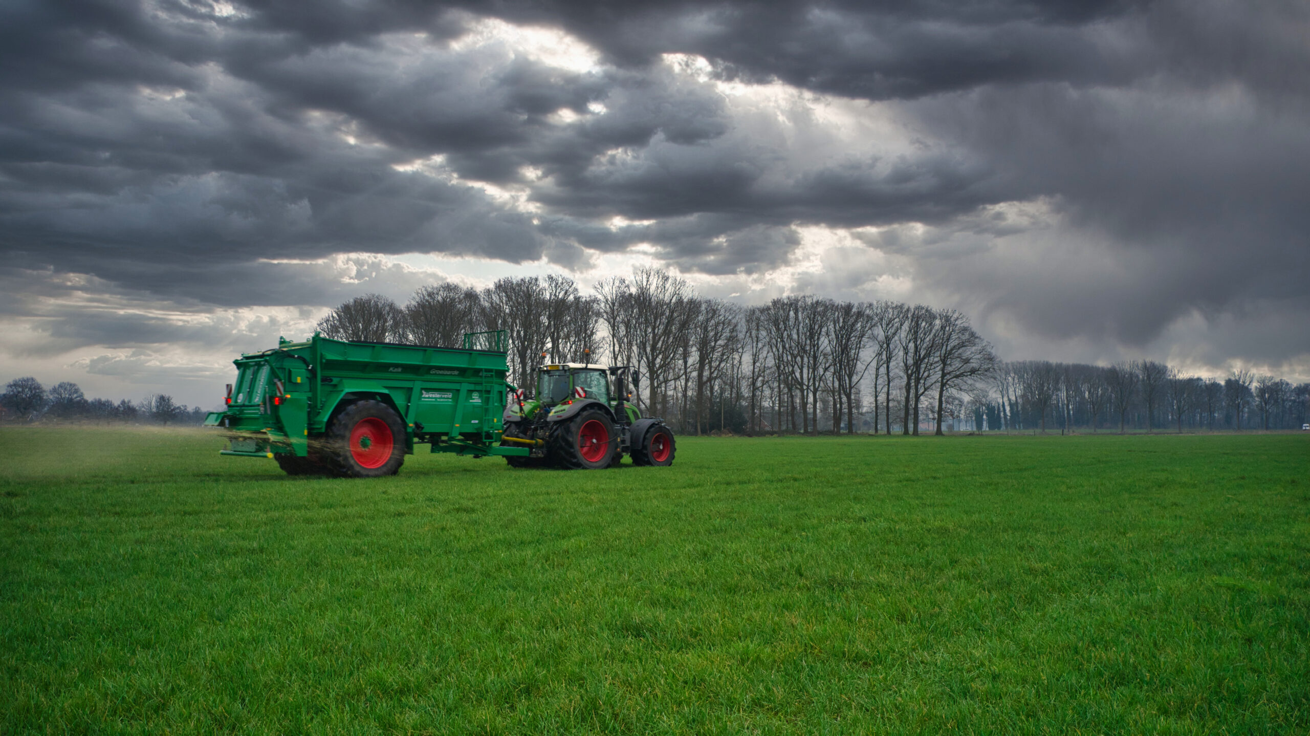 Met onze Tebbe strooien wij diverse vormen van meststoffen als groeiaarde, compost, vaste mest, kalk, slib, kippenmest enzovoorts. Deze breedtestrooier is zeer geschikt voor het strooien op zowel weiland als bouwland. Doormiddel van weeginrichting en GPS op de tractor kan zeer nauwkeurig worden gedoseerd. Met de kantstrooier strooien wij netjes langs de randen en ook in hoeken.